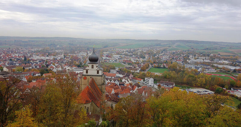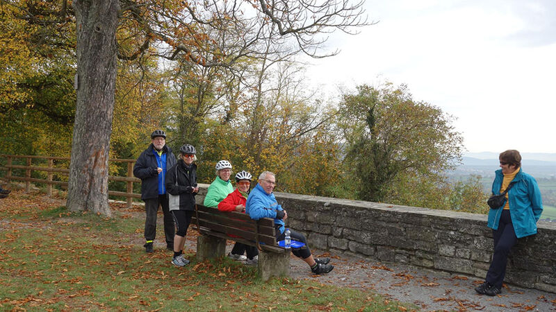 Zuerst ging es bei herbstlich kühlen Temperaturen am Galgenberg hinauf auf die Gäu-Hochfläche. Hier war es erheblich wärmer. Der Blick reichte über den Nebel im Neckartal bis zum Albtrauf. In rasanter Fahrt rollten die Räder hinunter ins Ammertal und durch Herrenberg hinauf auf den Schlossberg.