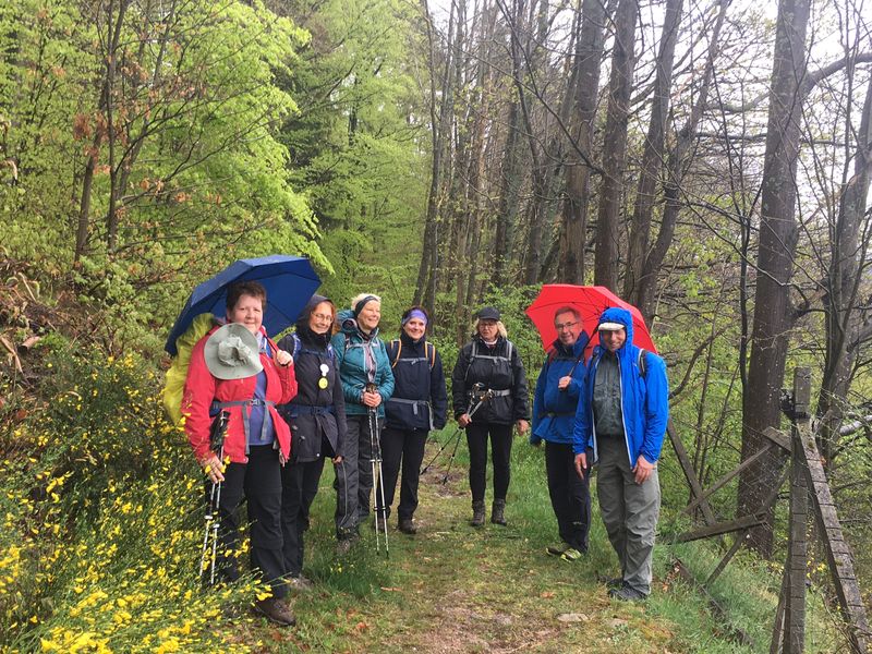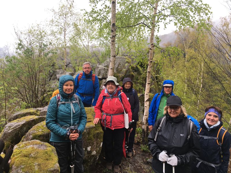 Bekanntlich gibt es kein schlechtes Wetter, nur schlechte Kleidung. Trotz sehr durchwachsener Wetterprognose machte sich eine 8-köpfige Wandergruppe auf zur 19 Kilometer langen Wanderung auf dem Gernsbacher Felsenweg.
