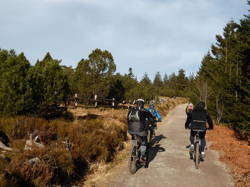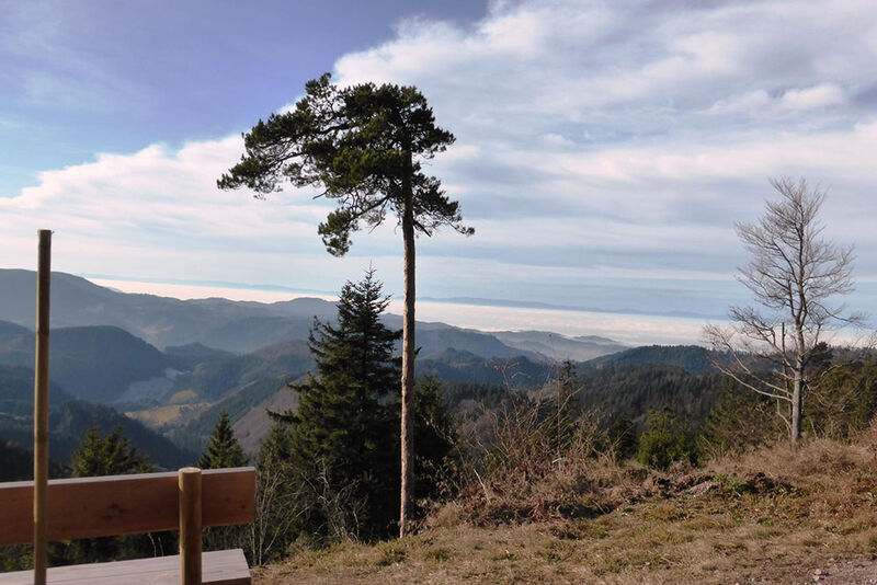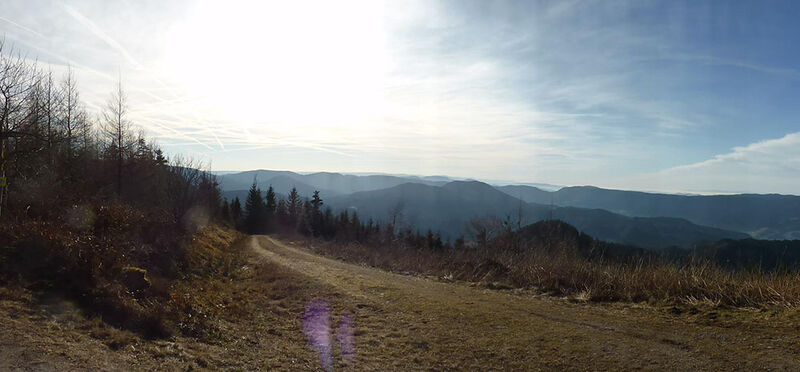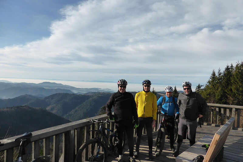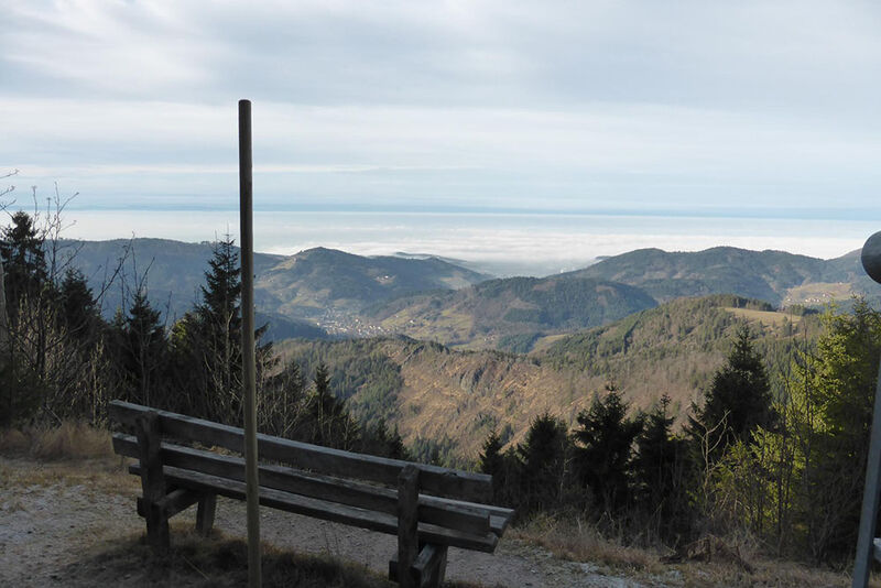 Dank Klimawandel konnte 2 Tage vor Heiligabend die 14. Donnerstags-Radeltour 2016 durchgeführt werden. Normalerweise sind um diese Jahreszeiten auf dem Skifernweg zwischen FDS-Kniebis und Ruhestein die Skilangläufer unterwegs. Die Hochdruck-/Inversion-Wetterlage mit angenehm warmer Sonne in den Höhenlagen bis 7°C bot entlang des Westweges in der klaren Luft fantastischen Fern-Aussichten.