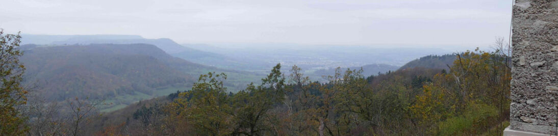 Eine herbstliche Wanderung mit noch passabler Fernsicht, das Wetter war besser als vorhergesagt, morgens noch teilweise mit blauen Flecken am Himmel. Bei Wiederholung der Wanderung im Sommer ist die Aussicht aus dem Wald wohl nicht so gut, dafür kann man sich an der Flora und Fauna der Magerwiesen erfreuen.