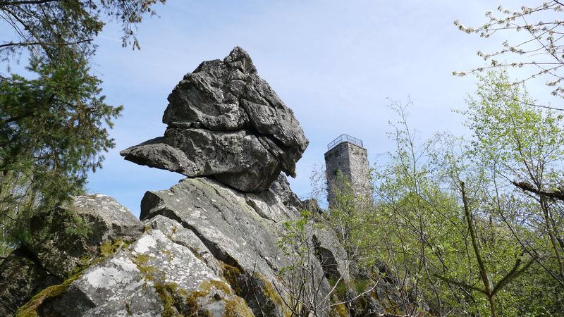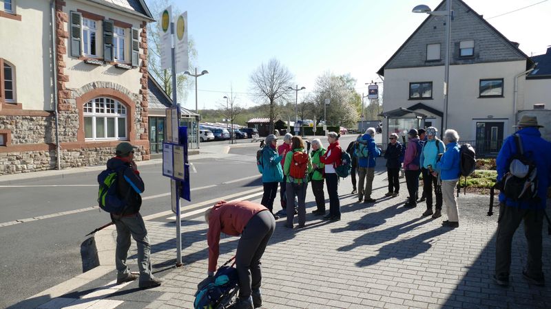 m Tag der Arbeit starteten wir zu unserer Wanderwoche im Hunsrück. Hannelore fuhr mit dem Wohnmobil und hatte unsere Koffer eingepackt. Wir fuhren mit dem Zug halb neun ab Nagold über Pforzheim mit problemlosen Umstiegen in Karlsruhe und Mainz nach Koblenz. Die Scanner der Kontrolleure konnten teilweise unsere Tickets noch nicht überprüfen, aber auch das war problemlos. Wir taten uns schwer, die Bushaltestelle außerhalb des Bahnhofs in Koblenz zu finden. Doch auch das klappte, und wir konnten um kurz vor drei den Expresss-Bus am Marktplatz in Kastellaun verlassen, dreißig Meter von unserem sehr guten Hotel „Altes Stadttor“. Kaffee-Pause, Gang durch die Stadt zur Burg, Zimmerbezug, Abendessen – und dann kam Hannelore mit unseren Koffern.