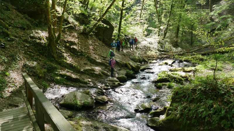 Der Freitag bot mit der Baybachklamm einen weiteren Höhepunkt. Die Anfahrt dauerte nur 25min. Steile Ab- und Aufstiege, schroffe Felsformationen und atemberaubende Einblicke in die scheinbar unberührte Natur begeisterten uns immer wieder.