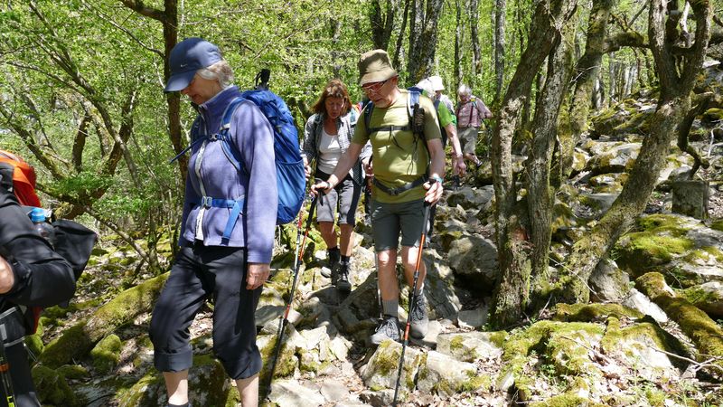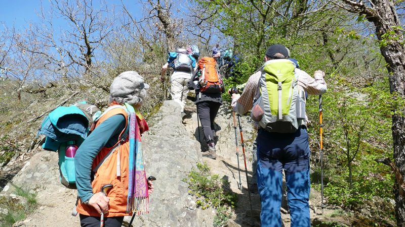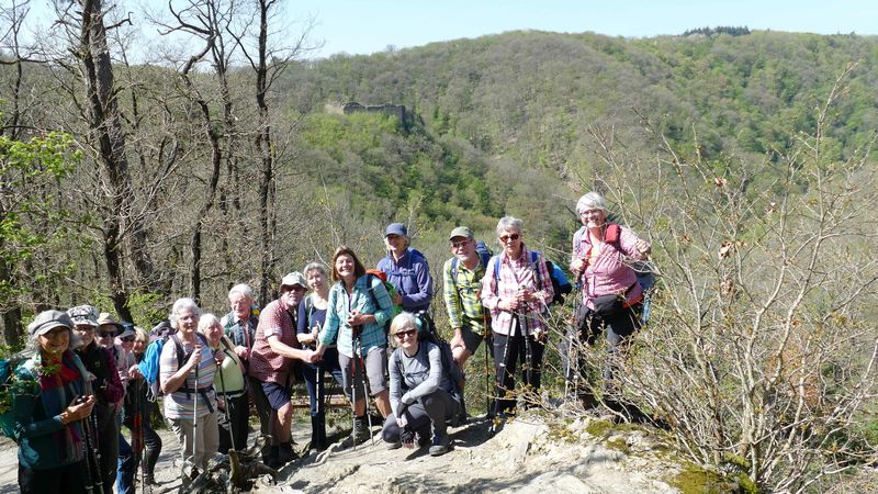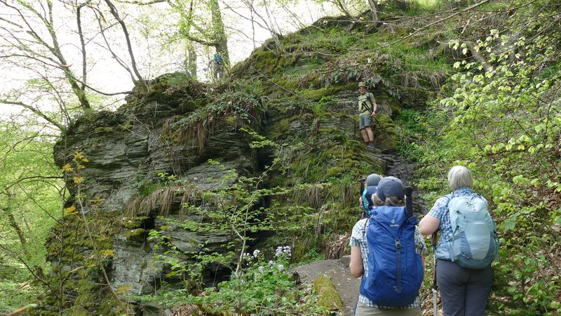 Am Samstag gingen wir auf dem Masdascher Burgherrenweg. Nach 40min Busfahrt gelangten wir an der Burgruine Balduinseck direkt auf den ausgeschilderten Pfad. Der Weg ließ uns die Stille in unberührter Natur genießen, viele Schautafeln informierten über Mühlen und Schieferabbau. Ein Abstecher zur Hängeseilbrücke Geierlay mit den vielen Besuchern war ein Kontrast zu den Wanderungen der Woche, bei denen wir fast nie auf andere Wanderer trafen.