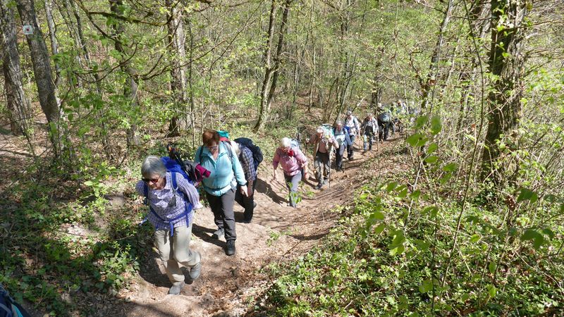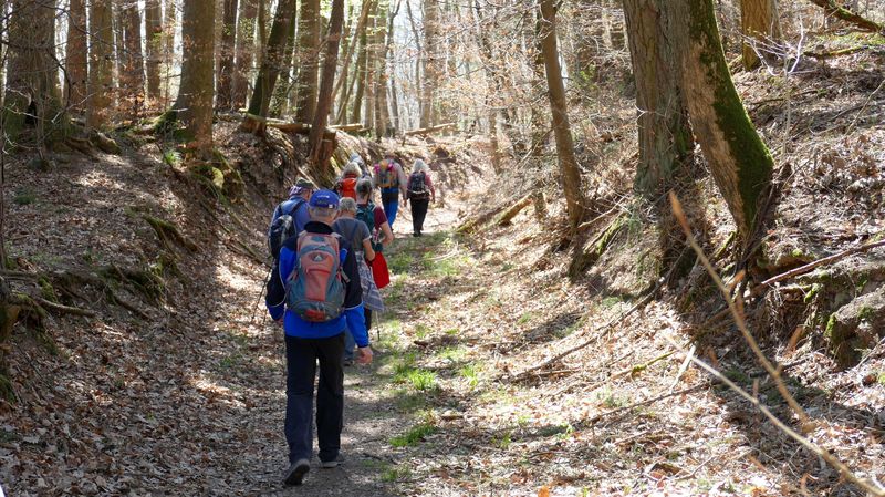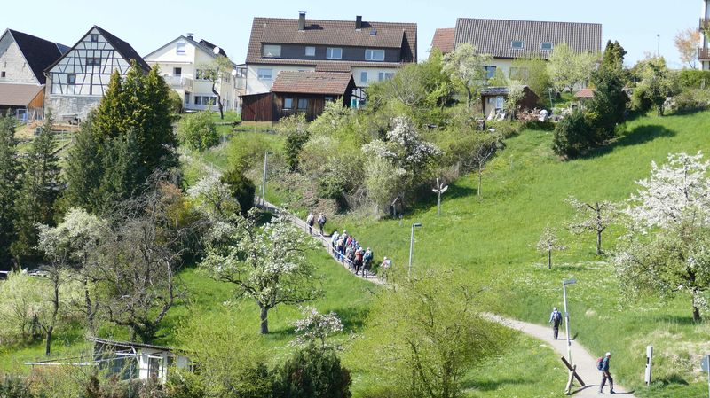 Am vorletzten April-Mittwoch trafen wir uns kurz nach elf am Herrenberger Bahnhof und fuhren mit Gruppen-Fahrkarten nach Entringen. Am Entringer Freibad vorbei gelangten wir am Sportplatz auf schöne Waldwege. Teilweise schmal und wurzelig, aber fast immer mit toller Sicht ins blühende Ammertal, gelangten wir zur Ruine Müneck. Von der Burg ist nichts mehr zu sehen, aber der Platz ist ein wunderbarer Aussichtspunkt. Dort stärkten wir uns während einer ausgiebigen Mittagspause in der Sonne. Auf weiteren schönen aussichtreichen Wegen gelangten wir an Kayh und Mönchberg vorbei gegen halb sechs zur Schlusseinkehr in den Biergarten des Herrenberger Naturfreundehauses. Von dort nahmen einige den Bus (Tages-Gruppenkarte!), einige legten die restlichen 4 Kilometer zum Bahnhof zu Fuß zurück.