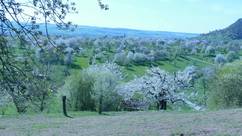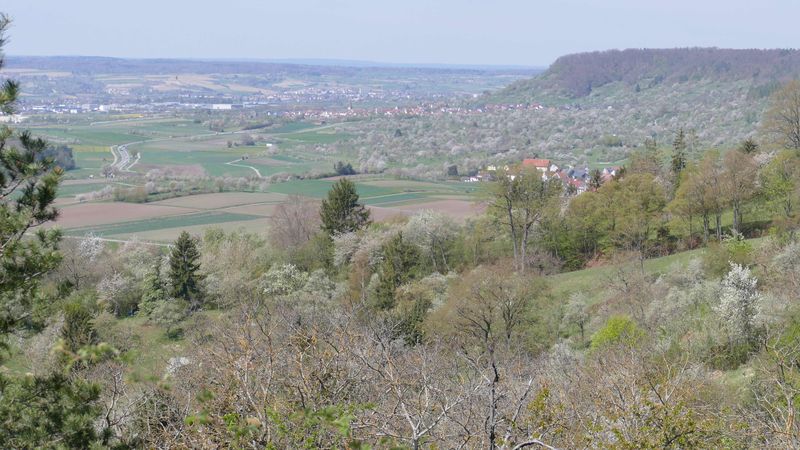 Das war gut so: die Bäume blühten, die Sonne schien bei einem kühlen Wind, und die Sicht übers Ammertal auf die Alb war super.