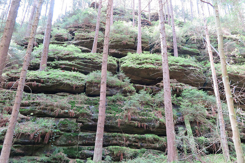 Die dritte Malerweg-Etappe von Hohnstein zur Ostrauer Mühle stand am Montag an. 9 Uhr Abmarsch vom Hotel, zunächst auf ein Stück auf dem Weg vom Vortag zurück, dann auf breitem Waldweg sanft ansteigend an steilen Sandsteinfelsen vorbei zur hervorragenden 180-Grad Panorama-Aussicht von der Bastei über die Elbe zu den Schrammsteinen. Nachdem wir uns fast satt gesehen hatten, wurde es ernst: 300m abwärts in Serpentinen über unzählige Stufen in den Tiefen Grund und gleich wieder aufwärts nach Waitzdorf zur Mittagspause. Nach einigen schönen Aussichtpunkten folgte der Abstieg nach Großdorf-Kohlmühle im Sebnitztal mit dem unter Denkmalschutz stehenden ehemaligen Linoleumwerk. Für den steilen Aufwärtsweg belohnten wir uns in Altendorf mit Kaffee und Kuchen und stiegen dann durch die Dorfbachklamm ins Kirnitzschtal ab. Noch ein Stückchen auf dem Flößerweg, und wir erreichten die Ostrauer Mühle. Per Festnetz bestellten wir unser Hotel-Taxi, die Wartezeit reichte gerade für ein Hopfen-Kaltgetränk, um den Flüssigkeitsverlust nach 20 km, 523m Aufstieg und 674m Abstieg auszugleichen.