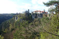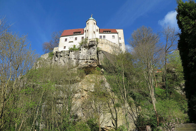 Am Samstag fuhren die 16 Teilnehmenden Umwelt- und Geldbeutel-freundlich (16€) mit dem Wochenend-Ticket von Herrenberg nach Bad Schandau. Trotz viermaligem Umsteigen – die Umsteigezeit in Hof 3 Minuten – waren wir auf die Minute pünktlich und wurden am Bahnhof vom Hotelshuttle erwartet. Schnelles Einchecken, Abendessen, da blieb noch Zeit zum Erkunden der nahegelegenen Burg Hohnstein. Von dort oben hatten wir eine berauschende Aussicht ins Polenztal und die gegenüberliegenden Felswände.