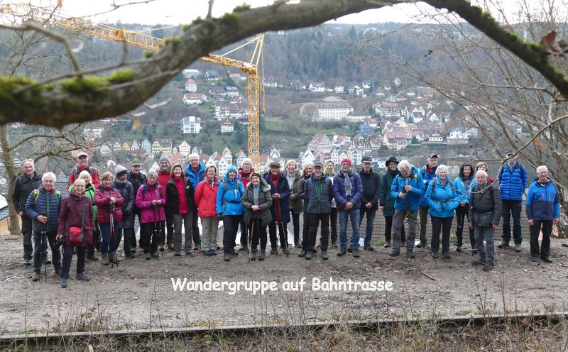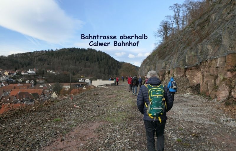 Auch bei der letzten Wanderung hatte wir wieder eine „Abenteuer-Bahnfahrt“. Während die Hälfte der Wanderer um 12.20 am Calwer Bahnhof wartete, mussten die anderen den Zug beim Halt in Wildberg wegen „Technischen Defekt“ verlassen und kamen später mit dem nächsten Zug an. Die Wartenden besichtigten zunächst die schöne Calwer Altstadt, dank telefonischer Absprache trafen wir uns dann oberhalb des Bahnhofs auf der alten Bahntrasse. Oberhalb des Bahnhofs war schon das Fundament fertiggestellt, auf dem der Übergang zum Bahnhof aufgesetzt werden wird. Wir folgten der Trasse -teils noch mit alten Schienen- bis zum Tunnelportal in der Fuchsklinge. Von dort gingen wir durch die Brückenbaustelle über den Tälesbach zum neuen „Fledermaus-Asyl“, in das die Tunnel-Fledermäuse einziehen (sollen). Auf dem Weiterweg legten wir an der Welzberghütte eine kleine Pause ein, dann folgten wir einem schönen Pfad aufwärts zum „Wackelstein“ und weiter zum Ortsrand von Heumaden. Auf dem aussichtreichen „Grünen Weg“ gelangten wir zum oberen Tunnelportal, überquerten die obere Bahntrasse und gingen hinunter nach Calw zur Schlusseinkehr im Schönbuchbräu um 16.30.