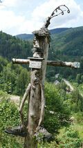 Erholt gingen wir abwärts zum Fuß der imposanten 65m hohen Staumauer und abwärts dem Wasserlauf von Raumünzach folgend Richtung Murgtal, dann wieder aufwärts. Oberhalb des Steinbruchs begrüßte uns eine nette „Vogelscheuche“, „Der Murgleiter“. Auf bequemen Wegen kamen wir gegen 16 Uhr wieder an den Autos an und fuhren zur Schlusseinkehr in die Mühlbachstube in Baiersbronn.