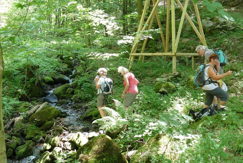 Nach der Ankunft mit der Bahn in Obertsrot ließ der erste Anstieg über 5 Kilometern und 450 Höhenmetern den Schweiß strömen, obwohl der Wald meistens Schatten spendete. Auf dem Weg abwärts nach Reichental machten wir Mittagsrast an der Fatima-Kapelle, dort konnten wir auch unsere Wasservorräte an einem Brunnen auffrischen. Von Reichenbach aus kam dann die erste richtige Härte: Aufstieg in der prallen Mittagssonne. Aber bald hatte uns der Wald wieder, und nach einigem Auf und Ab auf teilweise sehr schönen Waldpfaden erreichten wir den schönen Aussichtspunkt Latschigfelsen. Die zahlreichen blühenden Maronenbäume bildeten einen interessanten hellgrünen Kontrast zum dunkleren Wald. Von dort ging es mit einigen anstrengenden Ausnahmen (fast) nur noch abwärts zum Narrenbrunnen und über einen schönen Panorama-Weg (leider in der prallen Sonne) zur Schlusseinkehr am Bahnhof in Forbach gegen 17 Uhr. Die Rückfahrt bis Hochdorf verlief mit 13 Minuten Verspätung fast problemlos, doch zu der langen Umstiegszeit in Hochdorf kam -wie schon so oft - noch eine Verspätung von 40 Minuten dazu.