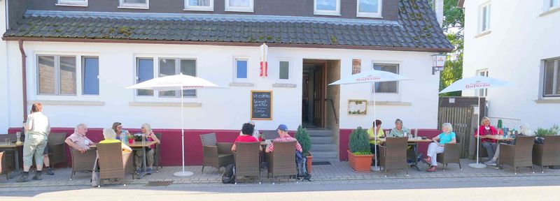 Von dort noch eine halbe Stunde bergab zur Schlusseinkehr im Lamm in Schönenberg. Von dort ging eine Gruppe zum Bahnhof Mühlacker, die andere besichtigte noch den Garten des geschlossenen Waldenser-Museums und fuhr mit dem Bus zum Bahnhof. Am Pforzheimer Bahnhof traf man sich wieder und fuhr mit der Nagoldtalbahn zurück nach Wildberg und Nagold.