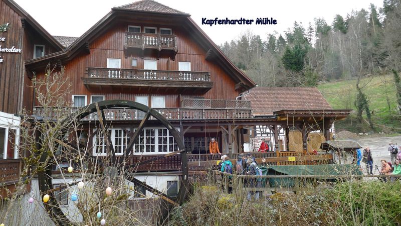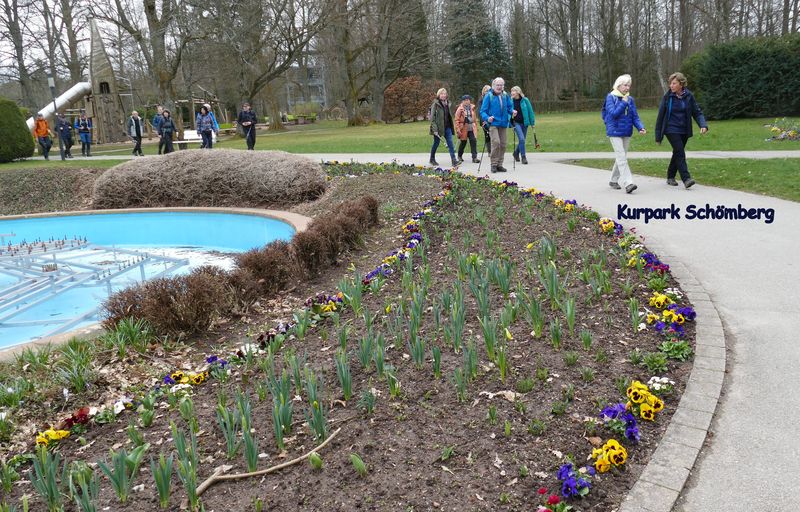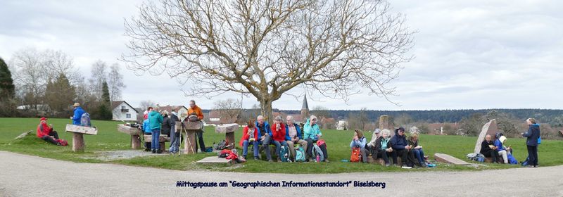 Einige von uns holten sich einen Stempel an der Stempelstation im Cafe, dann stiegen wir stetig über 4km und 280Hm aufwärts nach Liebelsberg zur Mittagspause am dortigen „Geographischen Informationsstandort“ mit vielen in Sandstein eingemeißelten Informationen. Der Weiterweg führte durch den Ort und dann auf schönem Wanderpfad abwärts zur Kapfenhardter Mühle. Von dort gingen wir entlang des Eulenbachs auf bequemem Forstweg stetig aufwärts nach Schömberg. Ein besonderes Schmankerl war dabei der Abstecher über den Quellenpfad. In Schömberg machten wir noch einen Abstecher zu Aussichtturm „Himmelsglück“. Zur Schlusseinkehr war im Cafe Raisch Raisch die obere Ebene reserviert.