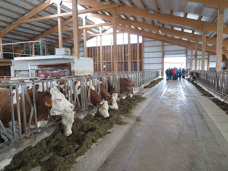 Ständig liest man von Industrie 4.0, wo sich die industrielle Produktion mit modernster Informations- und Kommunikationstechnik verzahnt. Aber das gibt es auch in der Landwirtschaft, wie es uns bei der Besichtigung der „Milchproduktion“ im Milchviehlaufstall eindrucksvoll erklärt wurde.