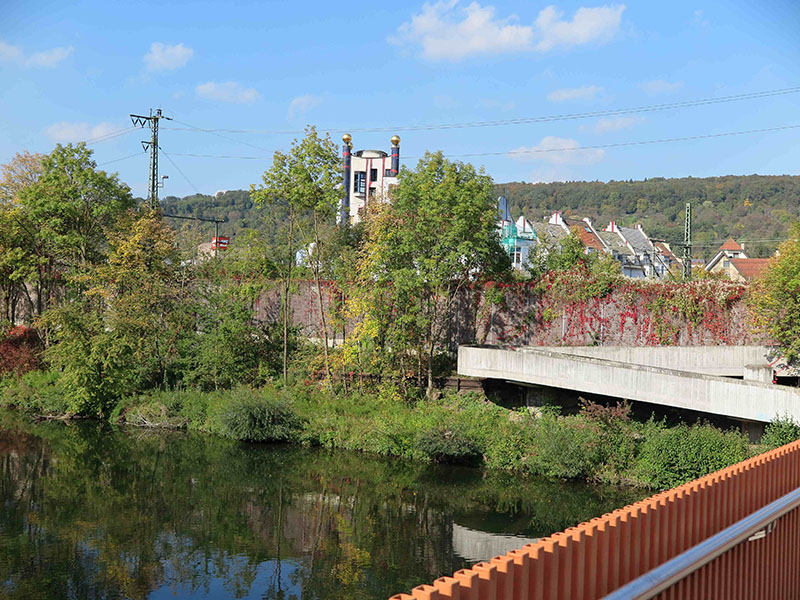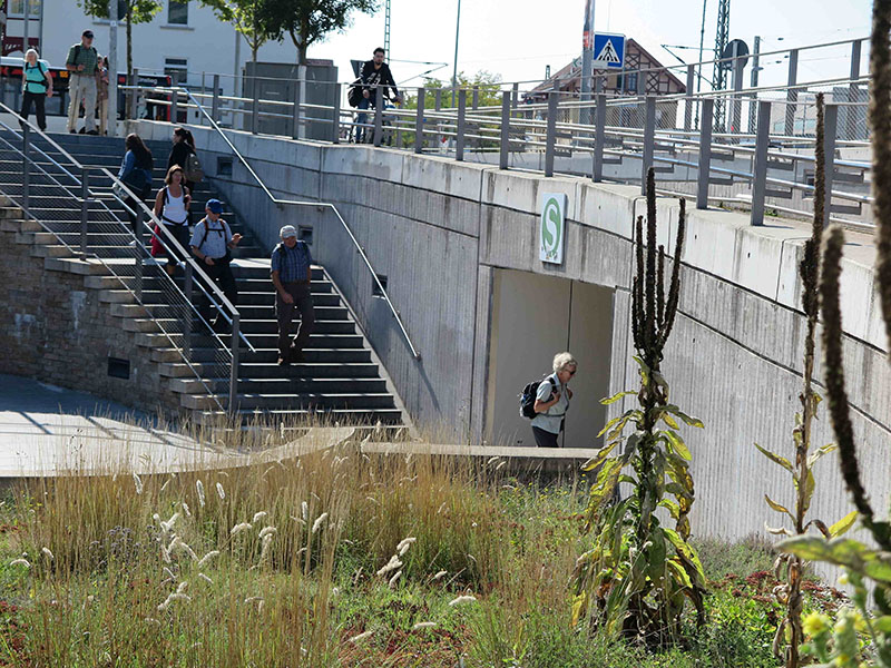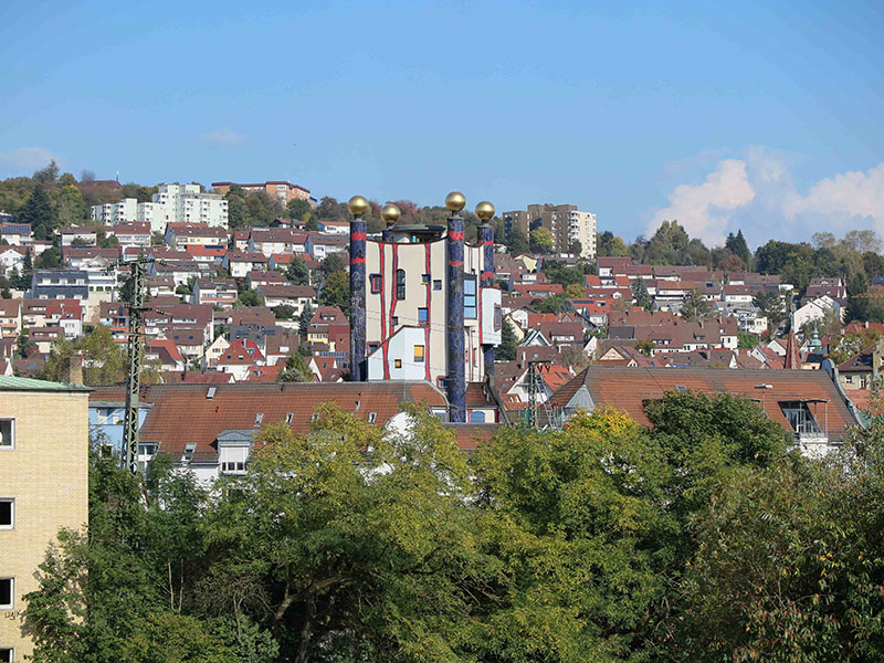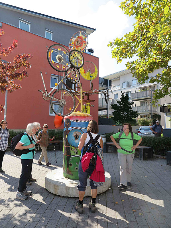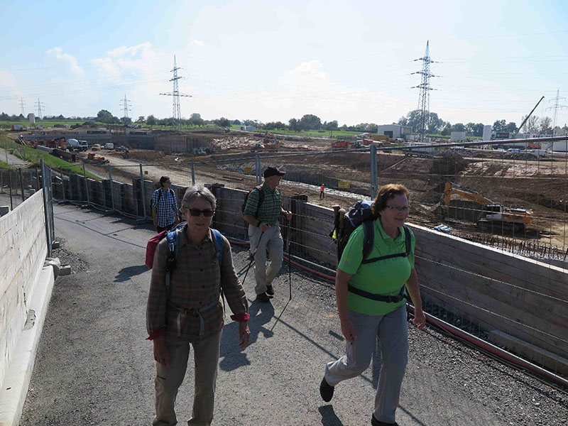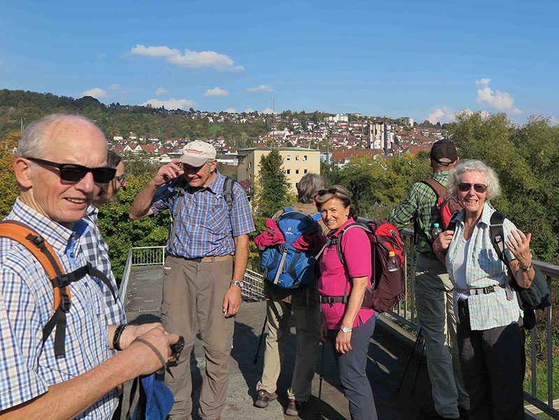 Sommerferien vorbei, die Bahn fährt wieder, und so konnten wir die den Neckarweg mit der zehnten Etappe fortsetzen. Vier kamen mit dem Bus von Nagold zum Herrenberger Bahnhof, von wo wir dann gemeinsam per Metropol-Ticket über Tübingen nach Nürtingen fuhren. Zunächst gingen wir direkt am Neckar entlang durch den Auwald bei Zizishausen und machten dann pünktlich um 12 Uhr unsere Mittagspause direkt am Neckar-Stauwehr. Hinter Oberbohingen verließen wir dann das Tal und überquerten die A8 mit Umleitung wegen der Bahn-Baustelle Stuttgart-Ulm. In Wendlingen wechselten wir auf der von Schickard 1602 erbauten Köngener Brücke die Neckarseite und stiegen auf zum Römerpark. Freundlicherweise öffnete uns eine Mitarbeiterin des Museumspavillons den Eckturm, in dem wir uns anhand einer Modellanlage über den Bau der römischen Kastelle informieren konnten. Dann ging es eine gefühlte Ewigkeit lang durch Köngen´s Wohngebiete, bevor wir auf freies Feld und in schönen Laubwald gelangten. Auf schönem schmalem Pfad stiegen wir wieder ab ins Tal, überquerten B10 und Neckar und waren dann in wenigen Schritten pünktlich um 16 Uhr am Ziel: „Staigers Bären“ in Plochingen direkt am Hundertwasser-Haus „Wohnen unterm Regenturm“. Nach erfolgreicher Stärkung war es nur noch eine viertel Stunde zum Bahnhof, und heim ging´s mit der S1.