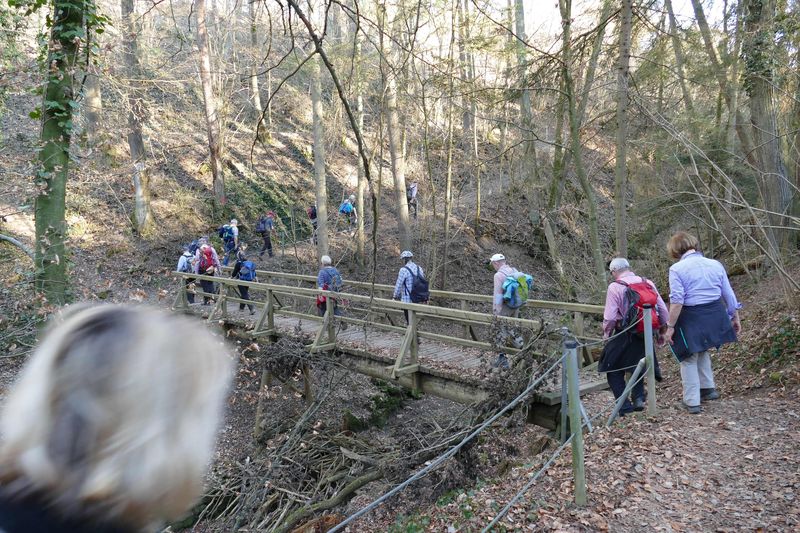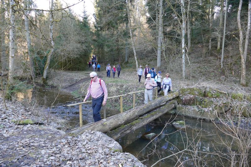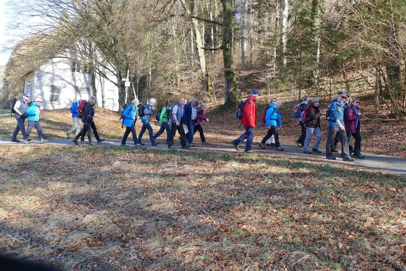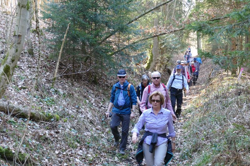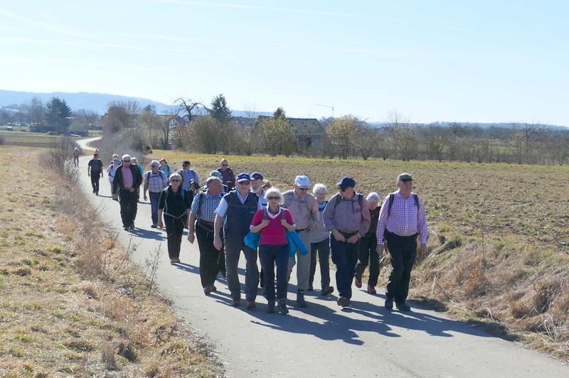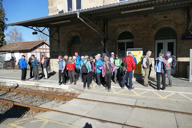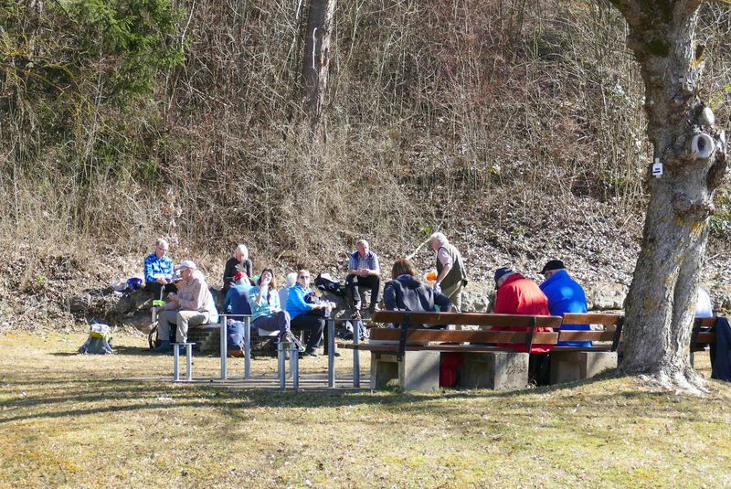 Mit der Kulturbahn fuhren wir nach Rottenburg. Dort warteten wir 23 Minuten in der Sonne auf unseren Zug, der uns zurück nach Bieringen brachte. Nach Überschreiten der Bahngeleise informierte uns Roland kurz über Rottenburg mit seinen 18 Teilorten. Über den Radweg gelangten wir zur Starzel und folgten dem Fluss aufwärts durchs schöne Tal bis zum Schützenhaus Bietenhausen. Nach einer Stärkung in der Mittagssonne verließen wir das Tal und stiegen auf die Hochfläche nach Bieringen auf. Die Straßen waren schon für den „Schmotzigen Dunschtich“ geschmückt, wir gingen in der Sonne weiter Richtung Eichenberg und gelangten dann auf einem schönen Hohlweg abwärts zur Katzenbacher Ziegelhütte. Im schönen Tal kamen wir an der Römerquelle vorbei und in Bad Niedernau auf den bekannten Neckarweg nach Rottenburg. Nach einer Getränke-Einkehr im Hirsch fuhren wir zurück nach Nagold.