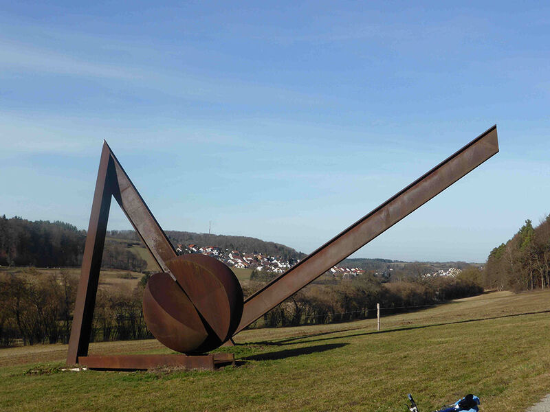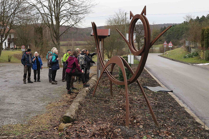 Wir verließen Dätzingen in Richtung Würmtal und gingen auf dem Würmtal-Radweg in Richtung Aidlingen. Am Würmtalhof überquerten wir die Würm und stiegen durch Lehenweiler auf ins Naturschutzgebiet Venusberg. Dort waren noch die Überreste einer Funknavigationsanlage der Luftwaffe vom Ende des 2. Weitkrieges zu sehen. Das Drehfunkfeuer wurde allerdings wegen Kriegsende nie in Betrieb genommen. Auch einige Kunstobjekte der Ausstellung „EigenArt“ von 2002 des Landkreises Böblingen konnten noch bestaunt werden. Durch die typische Heckengäulandschaft mit Schlehenhecken, Wacholderbüschen und Magerwiesen erreichten wir den Rastplatz „Drei Buchen“ und auf aussichtreichem Weg den Hengstetter Hof nach 22,6 Kilometern um kurz vor fünf. Dort wurden wir bei der Schlusseinkehr sehr gut versorgt.