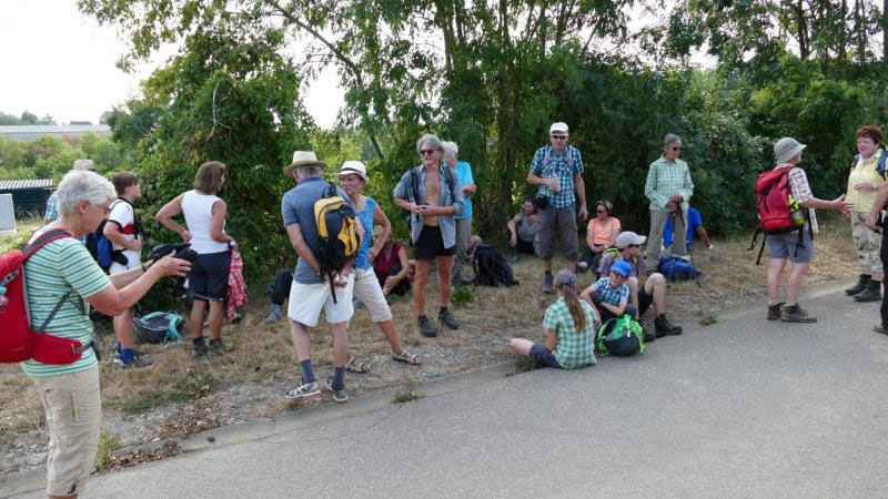 Mit Bus und Bahn fuhren wir nach Heilbronn, Umsteigezeiten unter 5 Minuten waren diesmal für uns kein Problem. Vom Bahnhof aus gingen wir zunächst zum Park und am Neckararm entlang zum Neckar. Entlang des Neckars gelangten wir nach Horkheim zur Mittagspause am schattigen Dachreiterbrunnen. Die Temperatur stieg an, und so kam eine Eiserfrischung aus dem Dönerladen gerade recht. Erfrischt überquerten wir den Neckar und gingen am Naturschutzgebiet Altneckar Horkheim vorbei in der heißen Augustsonne nach Nordheim. Dort kam ein kurzer Anstieg auf die höherliegenden Felder und Weinberge. Schöne Aussicht übers Neckartal und geschmackliche Überprüfung der Traubengüte machten die Wanderung kurzweilig, wir wurden auch endlich nicht mehr durch Radfahrer gestört. Bei der Schlusseinkehr gegen 15.30 im Dächle in Lauffen konnten wir den erheblichen Flüssigkeitsverlust kostengünstig ausgleichen, auch die Essensportionen waren kaum zu schaffen.