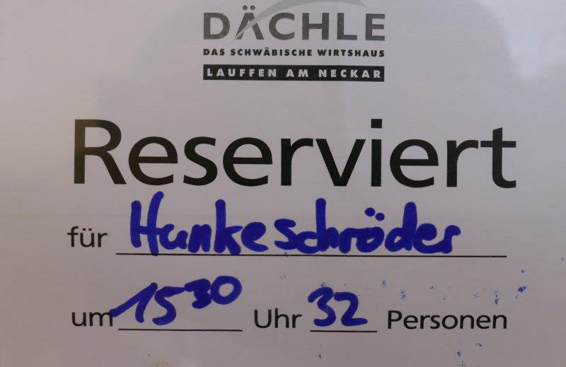 Das war die 16te und letzte Tagesetappe. Begonnen hatten wir den Neckar-Wanderweg im Mai 2016 mit der Etappe von Deißlingen zum Neckaursprung nach Schwenningen ins Schwenninger Moos. Damals 34 Teilnehmer, jetzt 32, und die vier