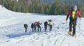 Aber allgemein und insbesondere wegen einigen Schneeschuh-Neulingen stand zunächst die Ausbildung auf dem Programm. Es musste gelernt werden, wie man die Schneeschuhe anschnallt, wie man die Batterien in das Lawinen-Verschütteten-Suchgerät einbaut, wie man den Lawinen-Pieps anlegt, wie man die Lawinenschaufeln und Lawinensonde im Rucksack verstaut und wie man das Ganze – mangels Lawinengefahr – auf den Berg trägt ohne es zu gebrauchen.