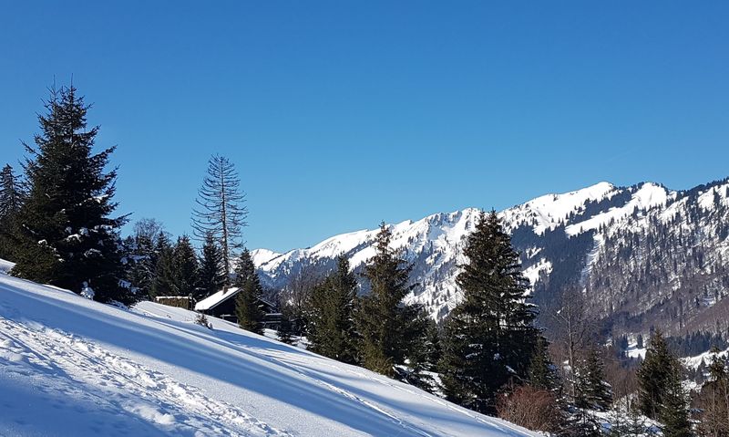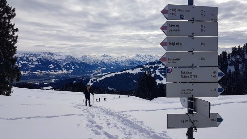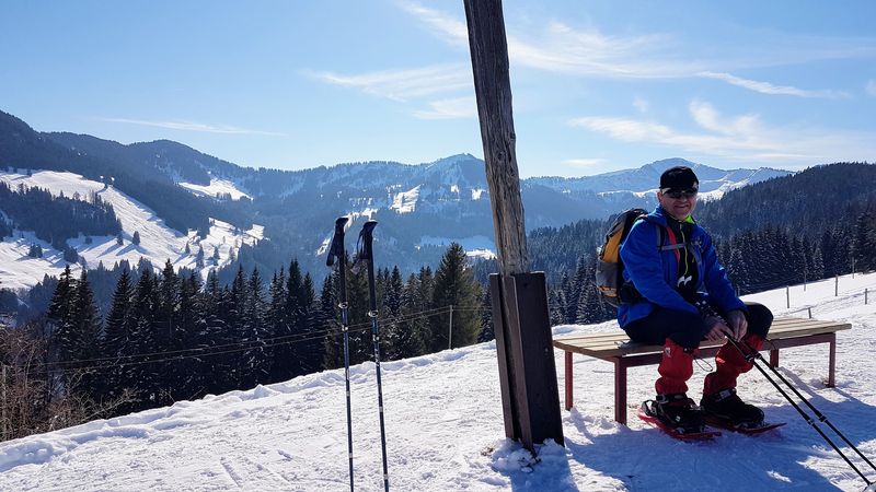 Aber die Schneeschuhtour führe weiter, bequem hinunter in Richtung Sonthofen, wo nach 12,5 km mit 750 Höhenmetern Aufstieg wieder Gunzesried erreicht war.
